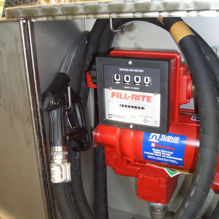 • Sve površine natopljene gorivom su od aluminija, nehrđajućeg čelika ili drugog nehrđajućeg materijala kompatibilnog s gorivom. Pristupni otvor mjerača mjerenja mjerenja mjerenja s kapom otpornom na vremenske uvjete i aluminijskim mjeračem mjerenja mjerenja mjerenja za ručno određivanje razine goriva.